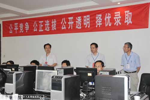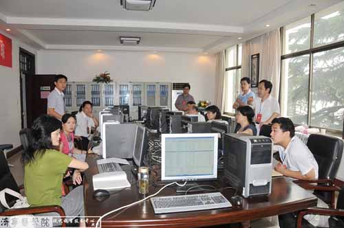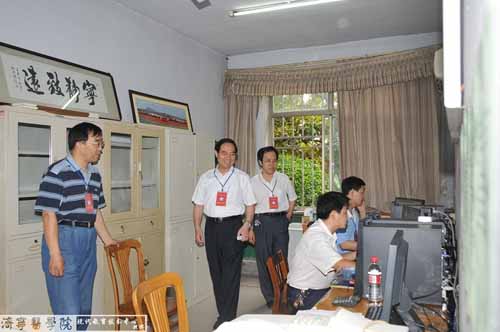7月18日 上午8时,党委书记武广华和党委副书记、院长白波在教务处处长司传平的陪同下亲临我校2009年网上招生录取现场检查指导工作。