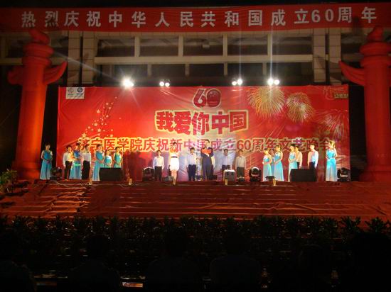 此次晚会是我校庆祝新中国成立60周年系列活动的一场文艺盛宴,在欢迎2009级新同学到来的同时,也表达了我校全体师生对伟大祖国的美好祝福。演出结束后,我校广大师生纷纷表示,祝愿伟大祖国永远繁荣昌盛,祝愿全国人民生活幸福安康,也衷心祝愿美丽的济医蓬勃发展,再创辉煌。