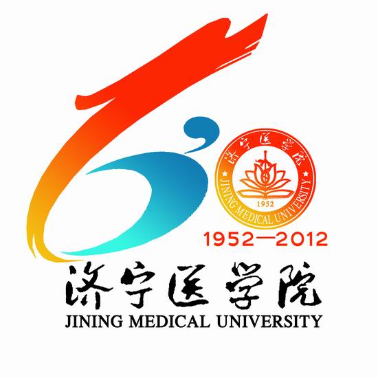 标识寓意:标识主体以数字“60”为造型基础,展示济宁医学院60华诞的光荣纪年。标识以书法笔触为主要表现手法,使之具有生命力、感染力和亲和力,传统的中国红黄渲染节日气氛的同时寓涵中国民族文化和传统文化的特征。靓丽的蓝色代表海洋,揭示济宁医学院儒风海韵、两地办学的特点,蓝色又象征医学、科技、国际化特色以及学校开放、创新和包容的特质。
