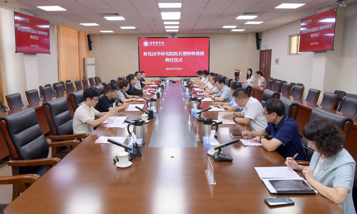 9月10日,学校举行转化医学研究院院长暨特聘教授聘任仪式。党委书记卢国华会见王金武教授一行,党委副书记、院长李栋出席聘任仪式并致辞,党委委员、副院长刘传新参加仪式,党委委员、副院长庞玉成主持仪式。