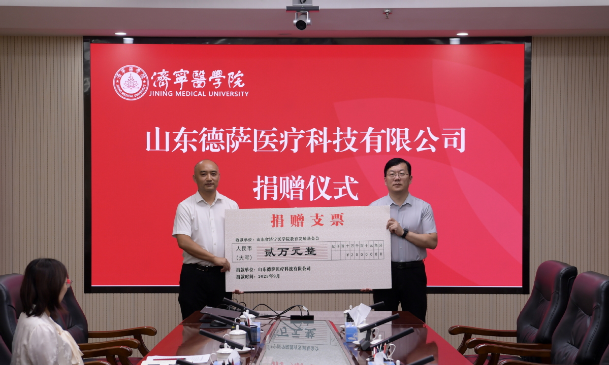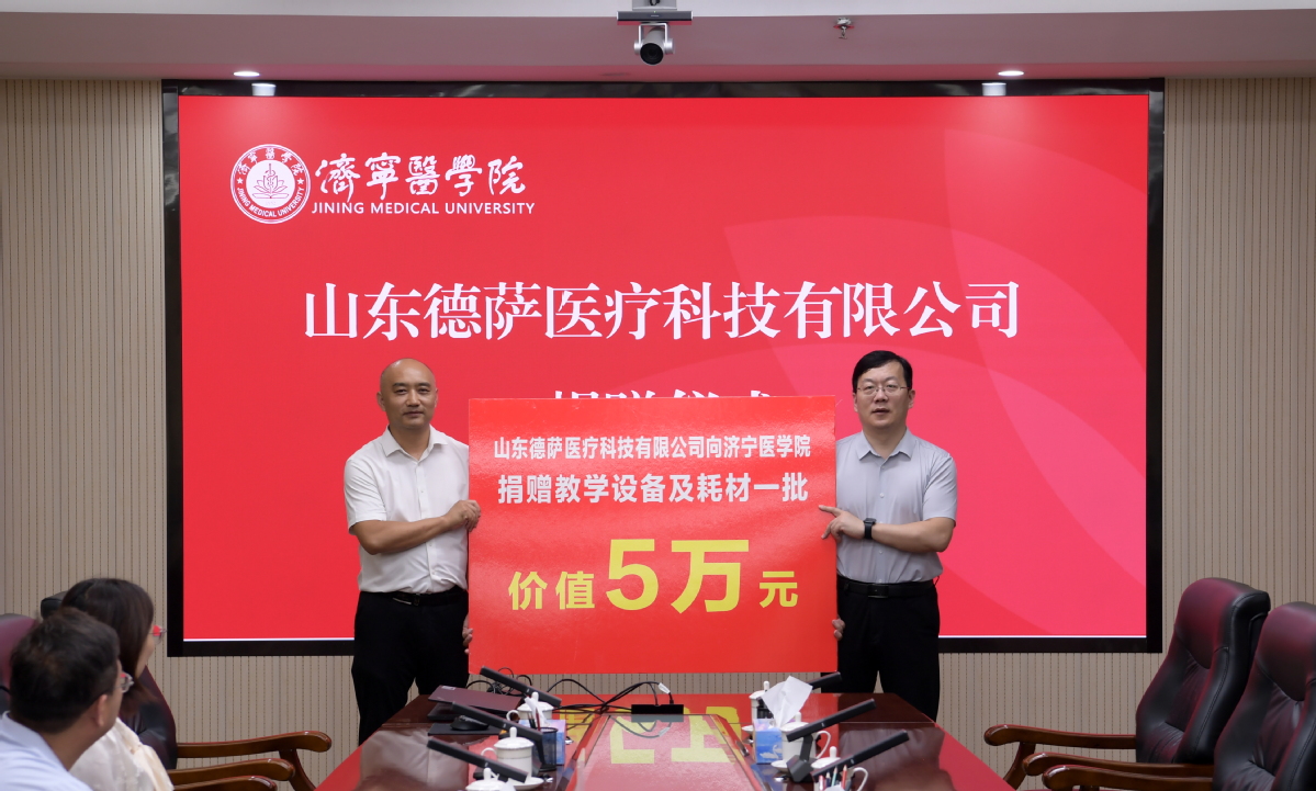 秋阳杲杲,金风送爽。9月15日下午,山东德萨医疗科技有限公司捐赠仪式在太白湖校区举行。山东德萨医疗科技有限公司董事长李强、总经理马鹏起、销售总监杨争光,我校党委委员、副院长庞玉成出席仪式。