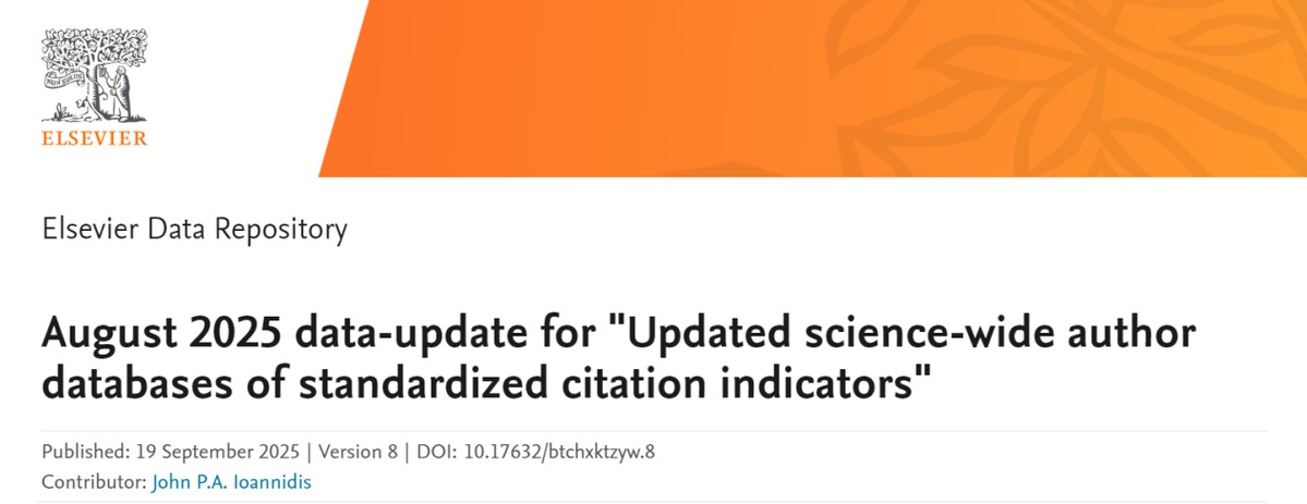 据悉,该榜单基于标准引文指标的全科学作者数据库,从全球近700万名科学家中甄选出各学科领域排名前2%的学者,覆盖22个领域和174个子学科。排名主要依据六类核心指标,总引用量、H指数、共同作者修正的Hm指数、单独作者文章的引用量、单独或第一作者文章的引用量和单独、第一或最后作者文章的引用量,能够更客观、更真实地反映科学家的产出量和学术影响力,为科学家长期科研表现提供了一个衡量指标。
