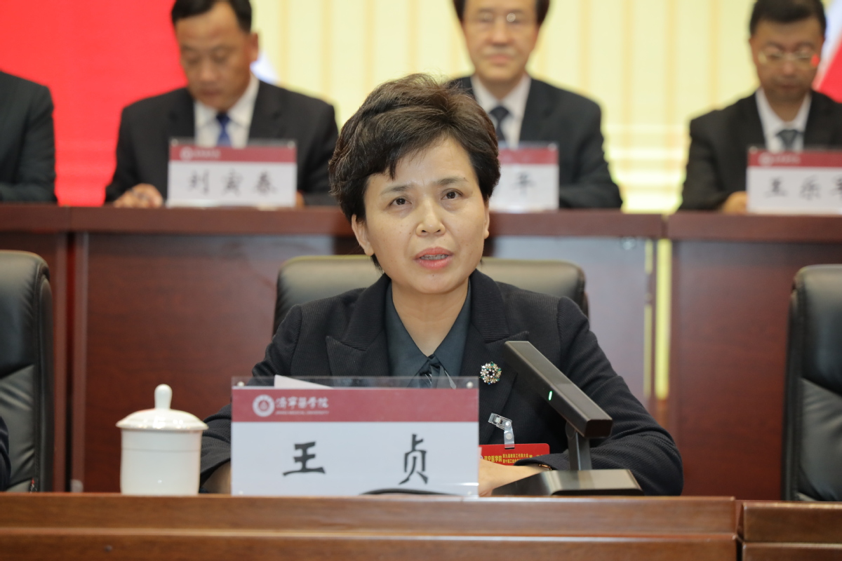 王贞代表山东省教育工会委员会向大会召开表示祝贺,她在致辞中充分肯定了学校发展所取得的成绩和为我省教育、卫生事业和经济社会发展作出的重要贡献,希望学校工会要提高政治站位,增强做好工会工作的责任感使命感;要聚焦中心工作,推动工会服务大局走深走实;要聚焦基本职能,推动工会维权服务做细做实。钟称生代表济宁市总工会向大会召开表示祝贺,他表示,学校作为我市高等医学教育的排头兵,紧密对接区域发展需求,在人才培养、科研创新、医疗服务等方面成效显著,为济宁打造区域医疗高地作出了重要贡献。希望学校工会继续主动参与济宁工会事业建设发展,形成校地联动、协同发展的良好局面。