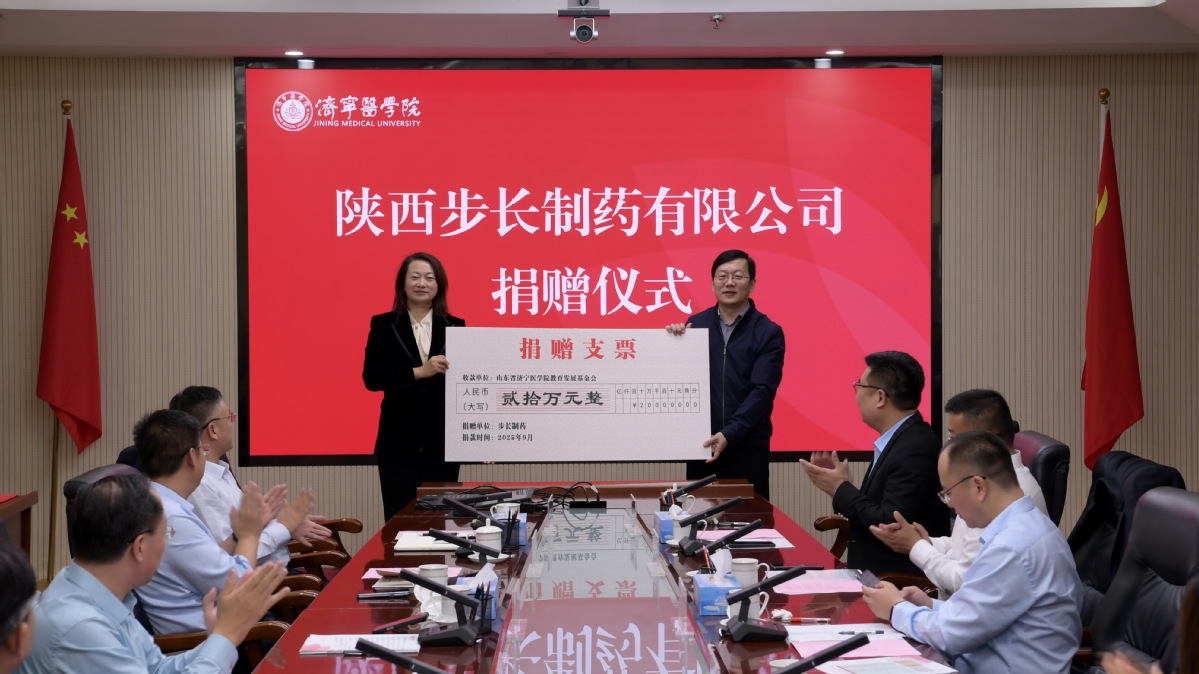 签约仪式上,刘传新、赵菁分别代表学校和陕西步长制药签署战略合作协议。捐赠仪式上,庞玉成代表学校教育发展基金会接受捐赠并为步长制药颁发捐赠证书。