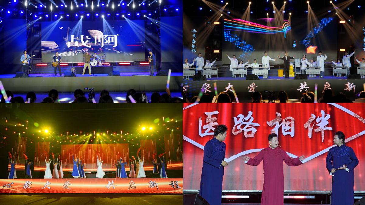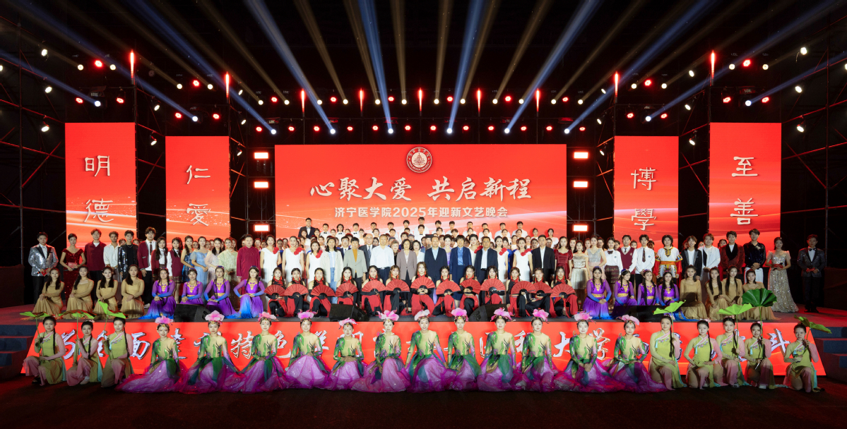晚会以精彩序章开篇,未来处方乐队率先登场,激情演奏瞬间点燃全场热情;校歌改编版创意打击乐《洁白的梦圣洁的情》精彩上演,明快节奏既彰显“济医特色”,更将开场气氛推向高潮。整场晚会深度融合“大爱济医”精神与“儒医文化”内涵,以“迎·逐梦赤心”“溯·儒医仁心”“传·大爱同心”三大篇章层层递进展开。日照校区艺术团携精心编排节目加盟,与太白湖校区师生同台联动,共展风采。