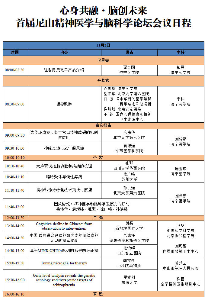 为积极响应国家脑计划与“健康中国2030”战略,促进精神医学与脑科学领域最新进展与知识的交流学习,推动创新理念与技术的应用,聚焦临床疑难问题与对策,由中华医学会行为医学分会与《中华行为医学与脑科学杂志》编委会主办,济宁医学院与北京大学第六医院承办、山东省神经科学学会精神病学基础与临床分会协办的“心身共融·脑创未来——首届尼山精神医学与脑科学论坛,定于2025年11月1日至2日在济宁医学院(山东省济宁市太白湖新区荷花路133号)举行。有关事项通知如下: