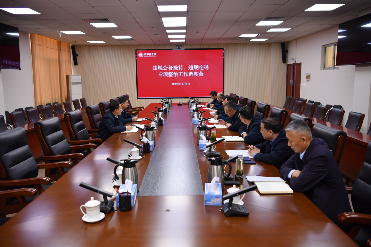 11月6日上午,学校召开违规公务接待、违规吃喝专项整治工作调度会,对专项整治工作进行再调度、再部署。学校党委委员、纪委书记、监察专员张甲福出席会议并讲话。