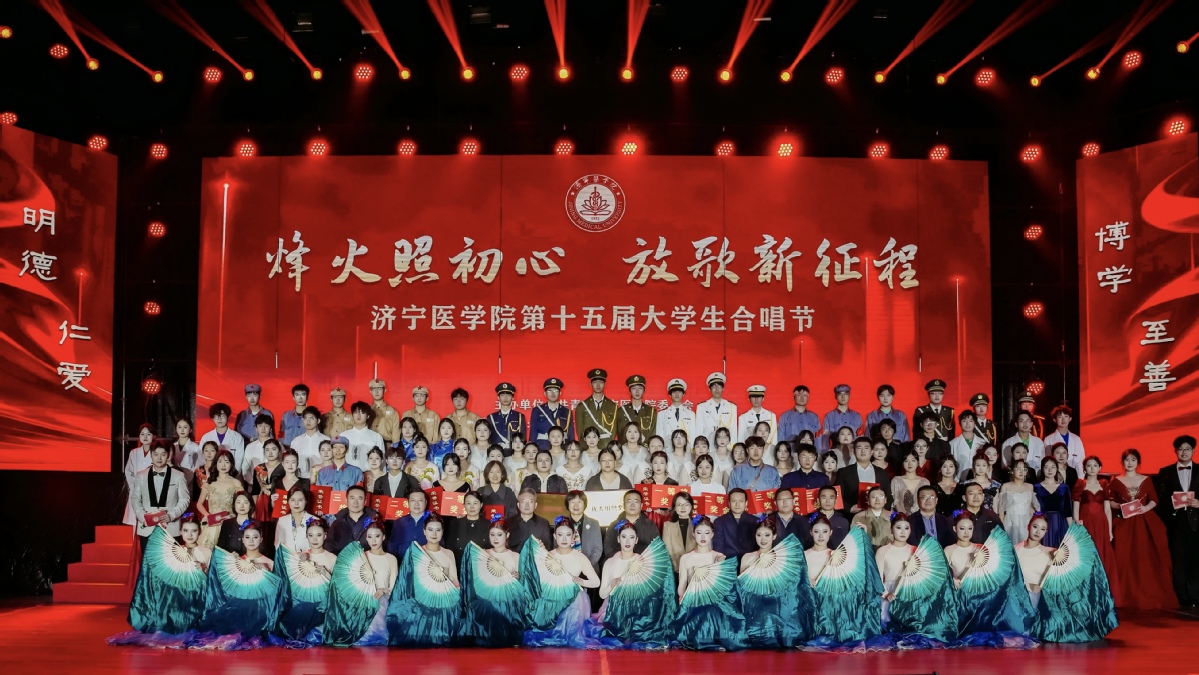 本届合唱节自启动以来,各学院积极响应,师生广泛参与,形成了“全员参与、层层选拔”的良好氛围。经过学院初赛和校级评审,7支合唱队伍最终脱颖而出,入围校级展演。展演分为“竞赛展示·合唱角逐”与“特邀演出·风采展示”两大环节。竞赛环节中,各参赛队伍精神饱满,倾情投入,以精湛的演唱和深情的表演赢得阵阵掌声,《强军有我》《打靶归来》等经典曲目,带领观众重温革命岁月,传承红色基因;《向往》《如愿》《在灿烂阳光下》等时代新声,唱响了济医学子对祖国的深情祝福和对未来的美好憧憬;《有我》《心同此愿》等作品,充分展现了新时代青年的责任担当和青春力量。在风采展示环节,日照市文化馆大活动部主任黄秋霖受邀献唱《再一次出发》,激昂的旋律激励学子勇担使命;创意打击乐《洁白的梦 圣洁的情》巧妙融合医学特色,抒发了学子深厚的爱校情怀;歌伴舞《铭记》通过艺术化的表现形式,展现了济医学子昂扬向上的精神风貌,将现场气氛推向高潮。
