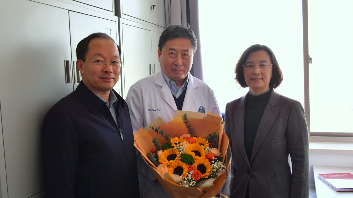 11月27日,党委书记卢国华,党委副书记、院长李栋一行专程赴上海交通大学仁济医院拜访我校杰出校友、中国科学院院士房静远教授并看望校友代表。