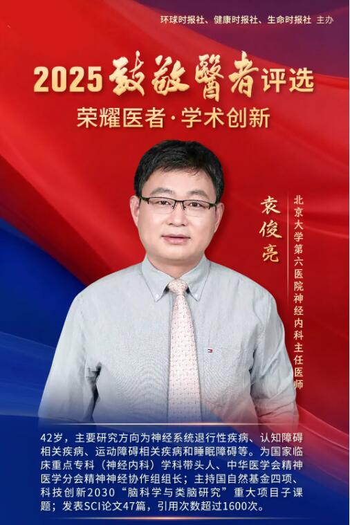 11月28日,由环球时报、健康时报、生命时报联合主办的“2025致敬医者盛典”在人民日报社隆重举行。我校2001级临床医学专业校友、北京大学第六医院神经内科主任、主任医师袁俊亮,凭借其在医学学术领域的杰出贡献,荣获“荣耀医者·学术创新奖”。