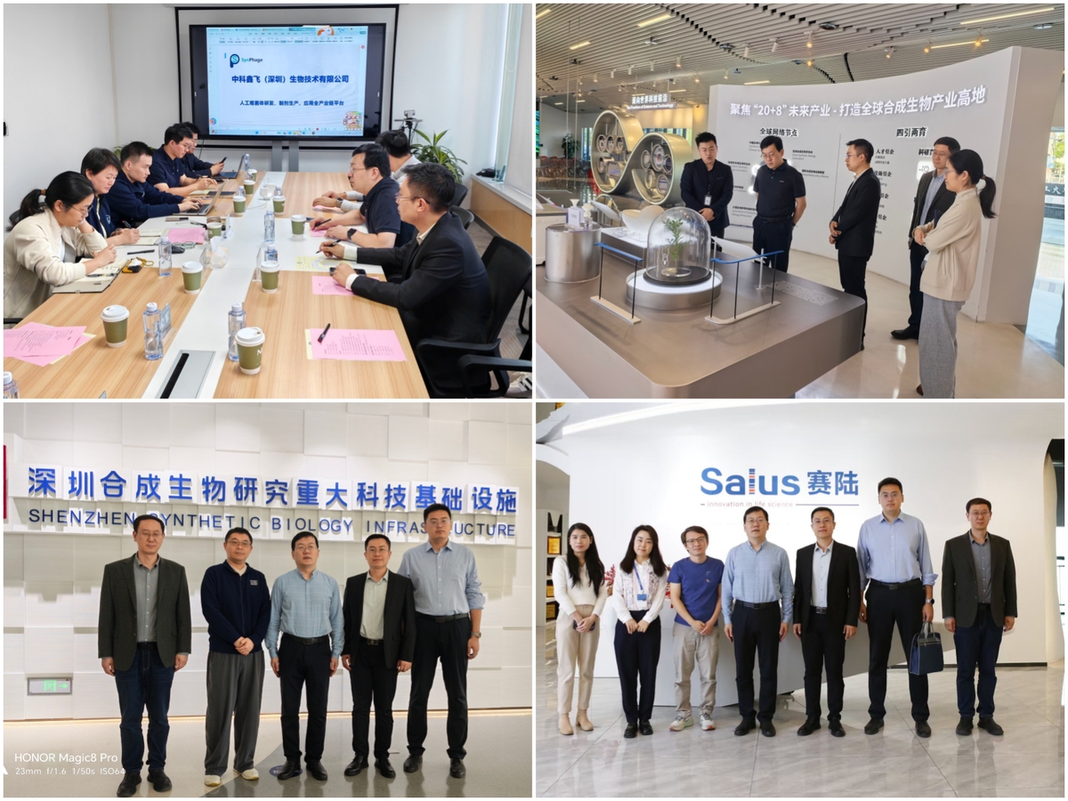 庞玉成一行先后走访深圳市工程生物产业创新中心、深圳赛陆医疗科技有限公司、安各洛(深圳)生物科技有限公司、深圳生葆生物科技有限公司、中科鑫飞(深圳)生物技术有限公司等多家知名企业,调研了深圳合成生物研究重大科技基础设施和国家生物制药产业创新中心建设基地等。走访期间,庞玉成介绍了学校的历史沿革、建设举措和办学特色以及近年来在生物制药、生物医学等相关领域取得的突出成果。他表示,学校高度重视与企业的合作,希望通过此次活动,进一步加深与深圳企业的相互了解,在人才培养、科学研究、成果转化、实习和就业等方面开展全方位、深层次的合作,实现资源共享、优势互补、共同发展。