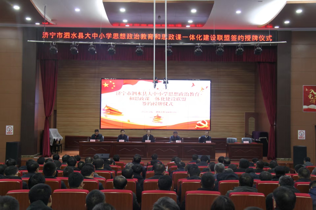 12月12日,我校与泗水县教育和体育局在泗水县洙泗中学举行大中小学思想政治教育和思政课一体化建设联盟签约授牌仪式。学校党委副书记张贤雷,泗水县政府副县长张磊出席活动并签约揭牌。泗水县教体局党组书记、局长李庆泉主持仪式。