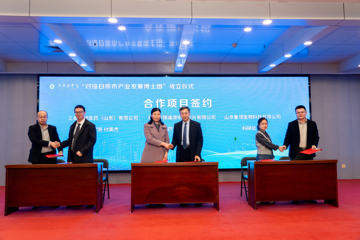 博士团教师代表——生命科学学院孙硕博士、日照市企业代表——特康药业集团有限公司副总裁孙泽友、日照市医疗卫生机构代表——东港区日照街道社区卫生服务中心主任乔卫东先后发言。