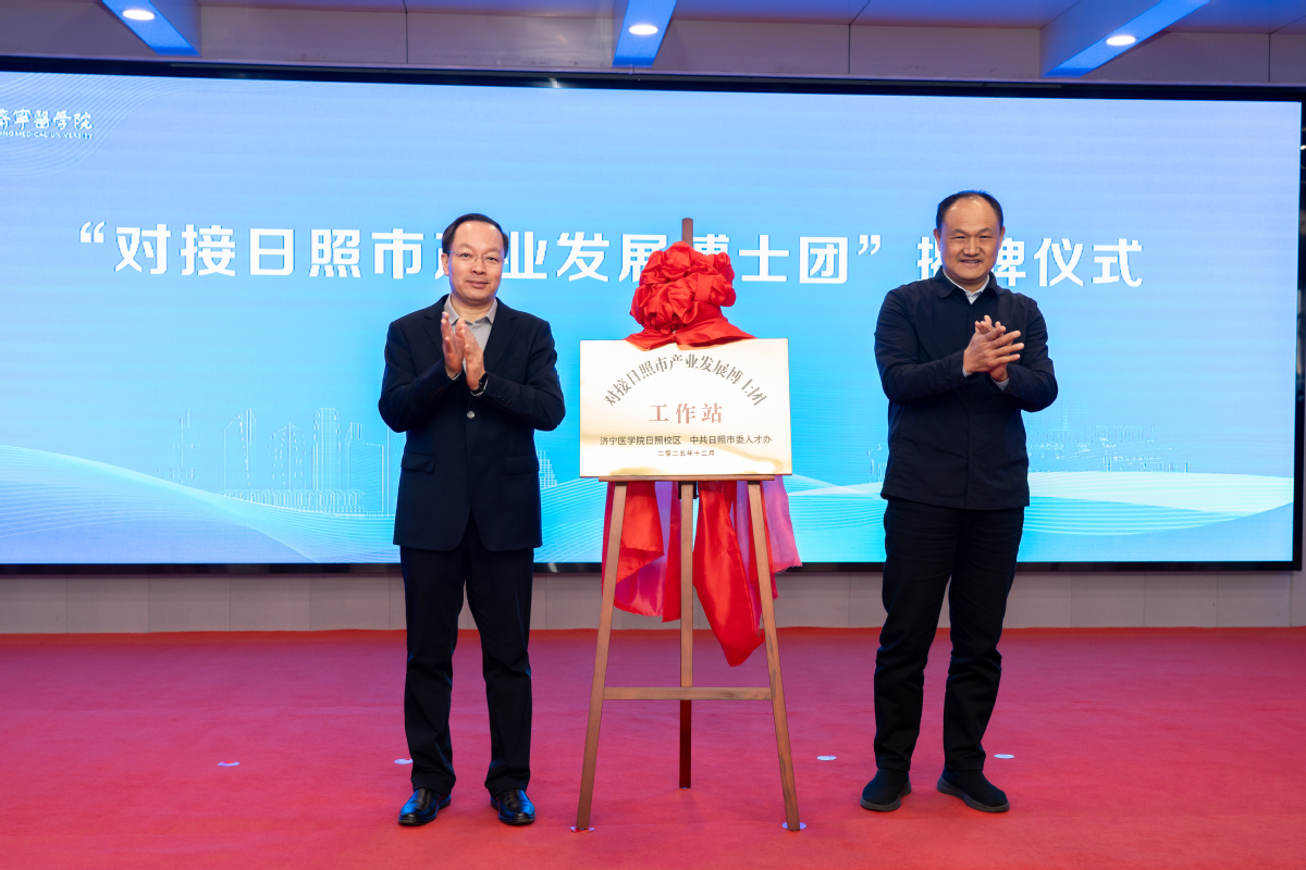 李栋、明铭共同为“对接日照市产业发展博士团”工作站揭牌。