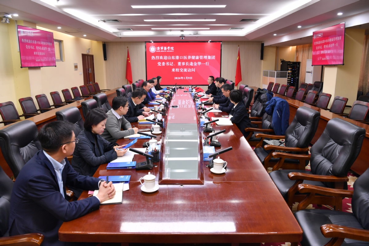 1月9日,山东港口医养健康管理集团党委书记、董事长逄金华率队来校考察交流。学校党委副书记、院长李栋,党委委员、副院长王文姮出席活动。