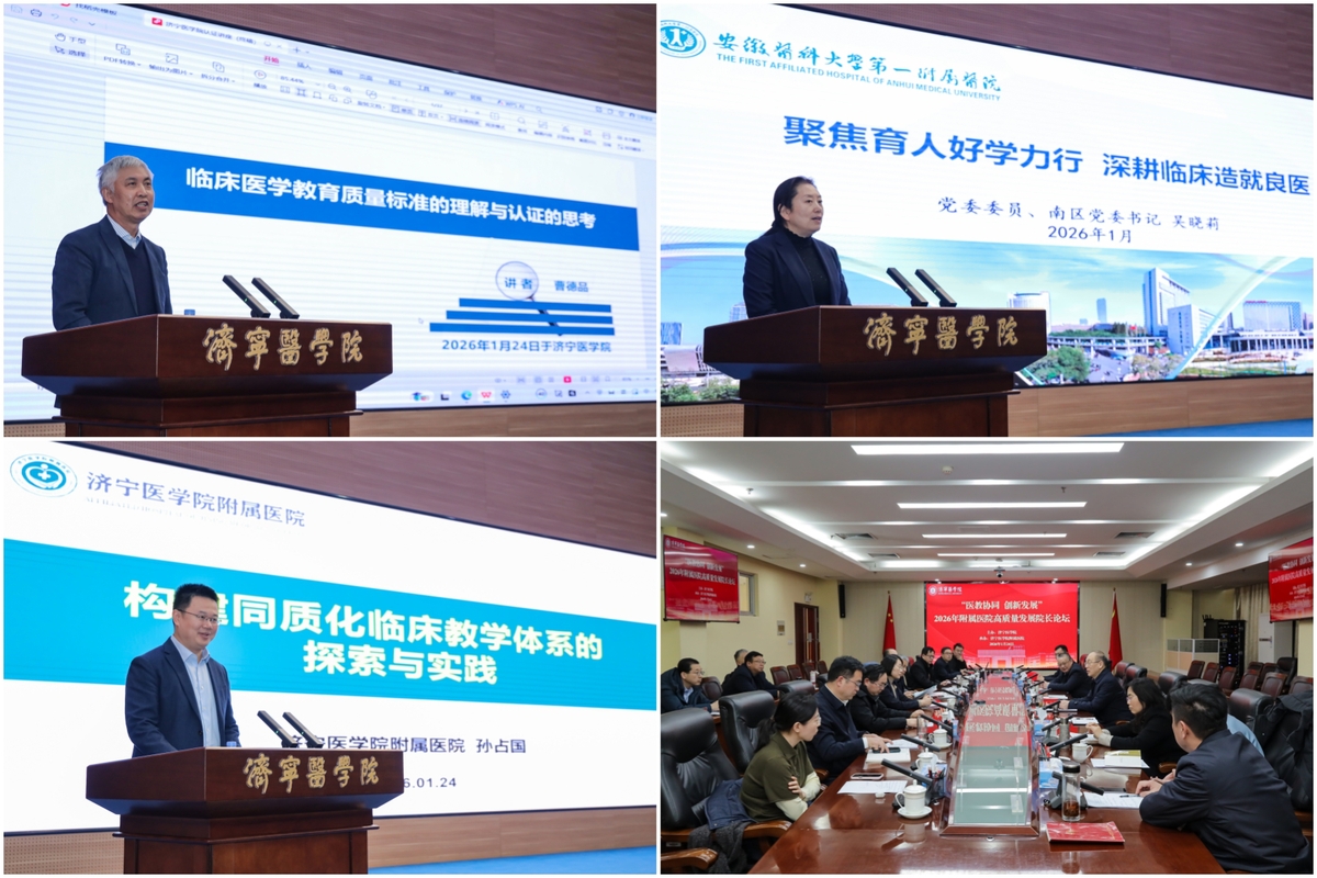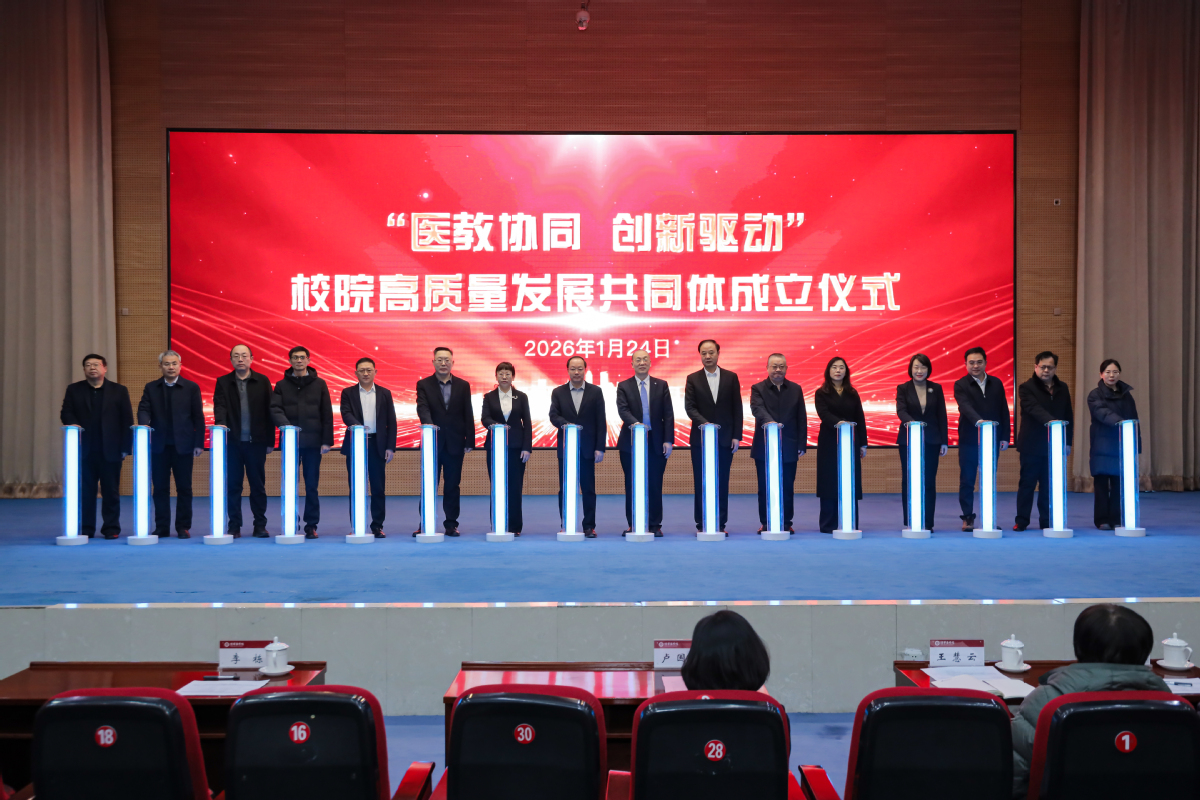 1月24日,学校召开2026年附属医院高质量发展院长论坛。党委书记卢国华出席会议并讲话,党委副书记、院长李栋出席会议并参加院校高质量发展共同体成立仪式,党委委员、副院长、附属医院党委书记甘立军主持会议。在家党委班子成员出席会议。