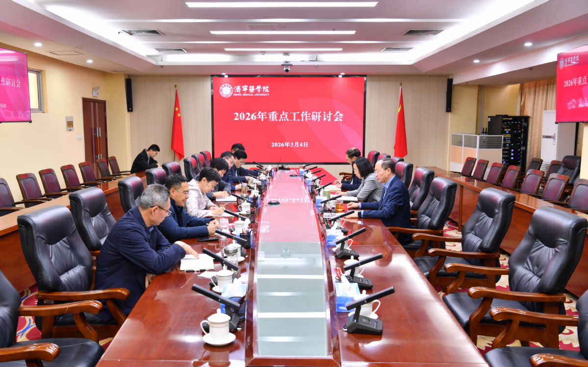 会上,党委班子成员结合分管工作及联系学院实际,围绕2026年工作打算、重点目标任务和工作落实举措等方面,畅所欲言,各抒己见,提出很多建设性意见建议。发展规划处、人事处、学生工作处、团委、教务处、科研处、研究生处、实践教学管理处、财务处、附属医院等10个部门负责同志立足学校发展大局,结合岗位职责,汇报具体工作打算、目标任务和工作举措,进一步凝聚了发展共识,细化了工作路径。
