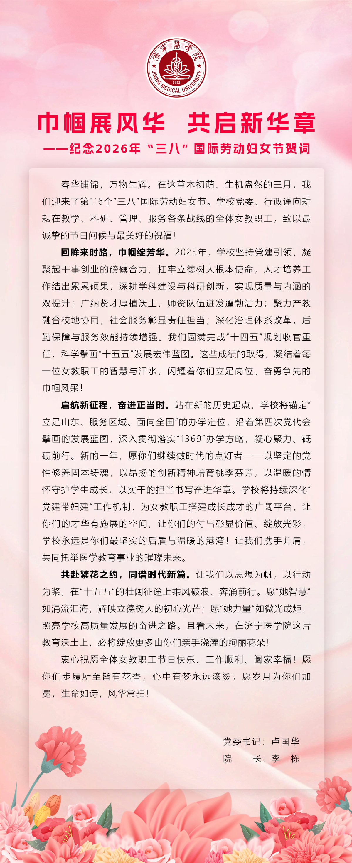 巾帼展风华 共启新华章——纪念2026年“三八”国际劳动妇女节贺词