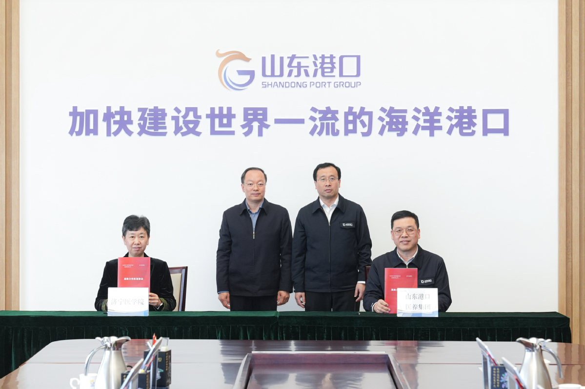 会上,学校与山东港口医养健康管理集团有限公司签署战略合作协议,并授牌“济宁医学院实践教学基地”、“济宁医学院附属医院医疗联合体医院”。