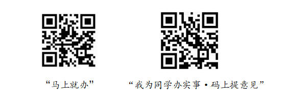 教职工可扫描“马上就办”二维码提出意见建议,由专班负责协调办理;学生可扫描“我为同学办实事·码上提意见”二维码提出意见建议,由学生处负责协调办理。